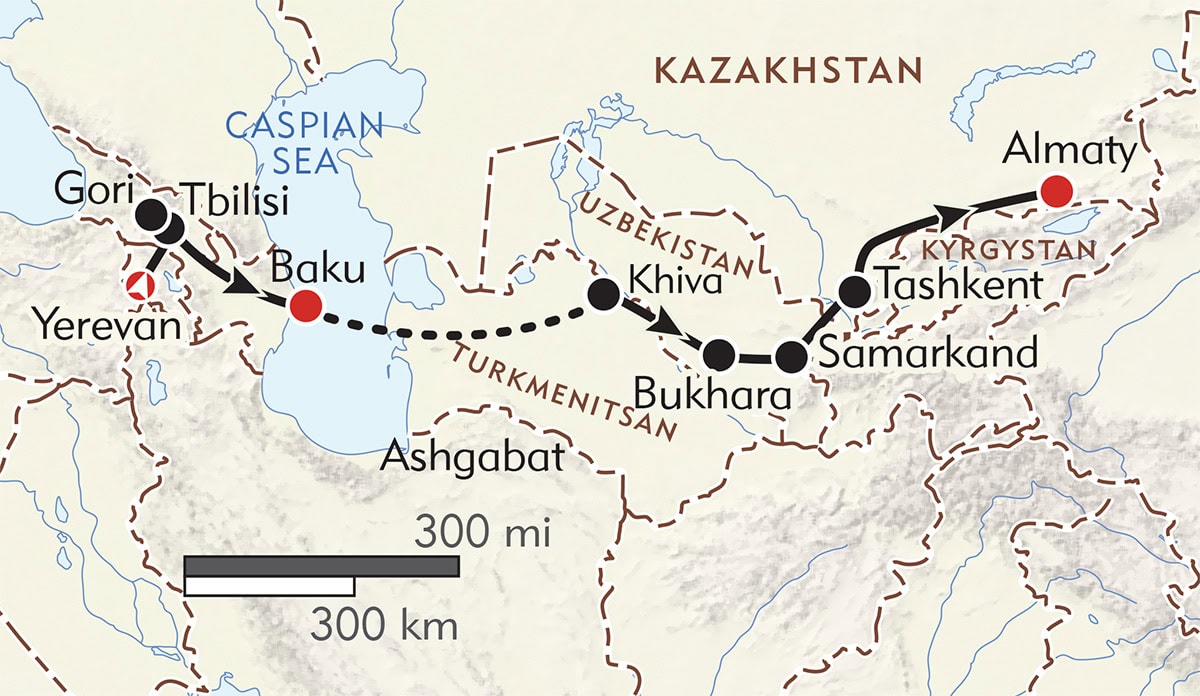 Seek out the spellbinding magic of the Silk Road on this experiential voyage through the South Caucasus and Central Asia. This extraordinary journey takes in the magnificent countries of Armenia, Georgia, Azerbaijan, Uzbekistan, and Kazakhstan—venturing into a part of the world difficult to reach for the ordinary traveler. Situated on a historic crossroads of trade, religion, language, and the arts, this intriguing region is an exquisite melting pot of cultures, cuisines, and communities blending the provincial with the palatial, the ancient with the avant-garde. Meander through the tranquil natural beauty of the South Caucasus region and experience the electrifying buzz of the UNESCO-honored cities of Khiva, Bukhara, and Samarkand over the course of this breathtakingly beautiful 16-day journey.