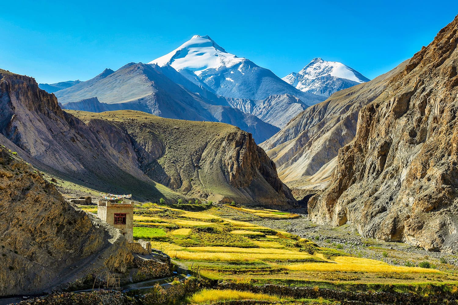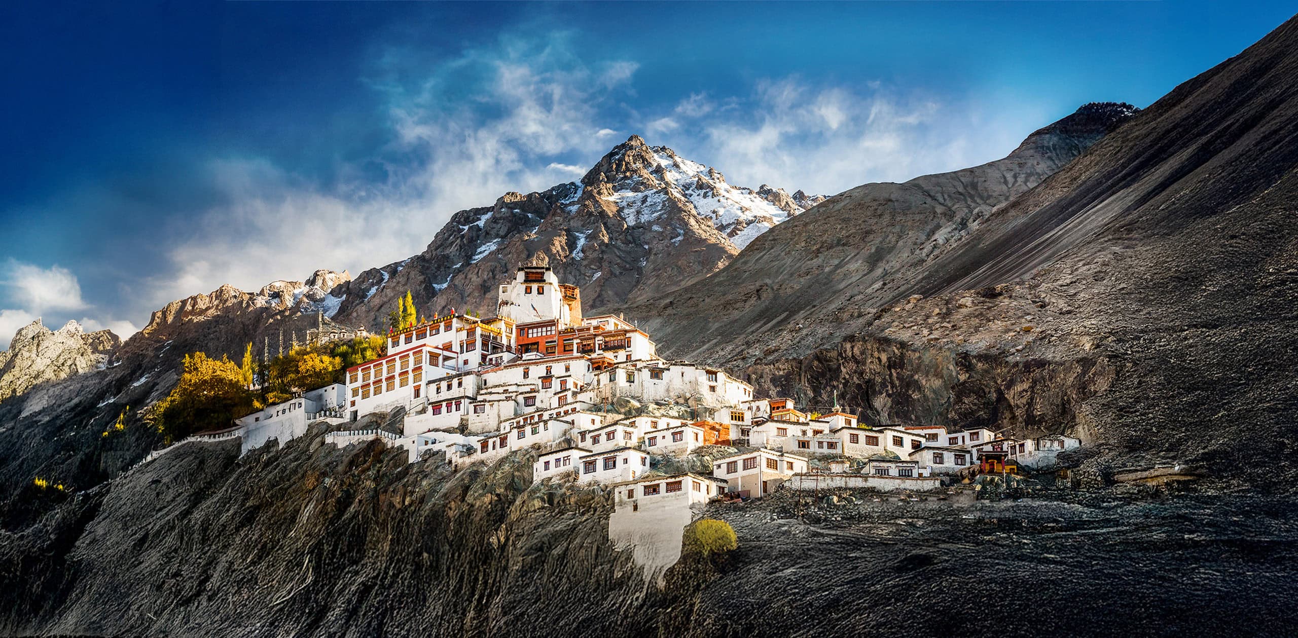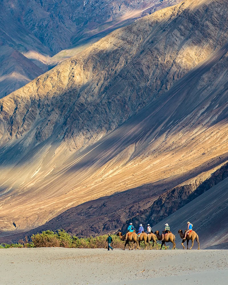 Awe-inspiring Ladakh is a vast moonscape of 20,000-foot peaks surrounding stone-built villages and an ancient cultural heritage. In this Buddhist realm hidden in the Western Himalayas, we take day hikes to traditional villages under a cobalt-blue sky, discover the grand hilltop monasteries of the Indus Valley, including lovely Hemis Monastery, built in 1630, and witness a vibrant monastic festival. Tibetan heritage is beautifully expressed here in the traditional dress of the people, in thousand-year-old monasteries clinging to cliffs, and in serpentine walls of exquisitely carved mani stones (Buddhist prayer stones). Special highlights of our journey include witnessing the Phyang Tsedup festival in a remote village and exploring the breathtaking Nubra Valley, where we cross the world’s highest motorable road, visit villages in the high mountain desert, and watch a golden sunset from atop a massive statue of the Maitreya Buddha.
