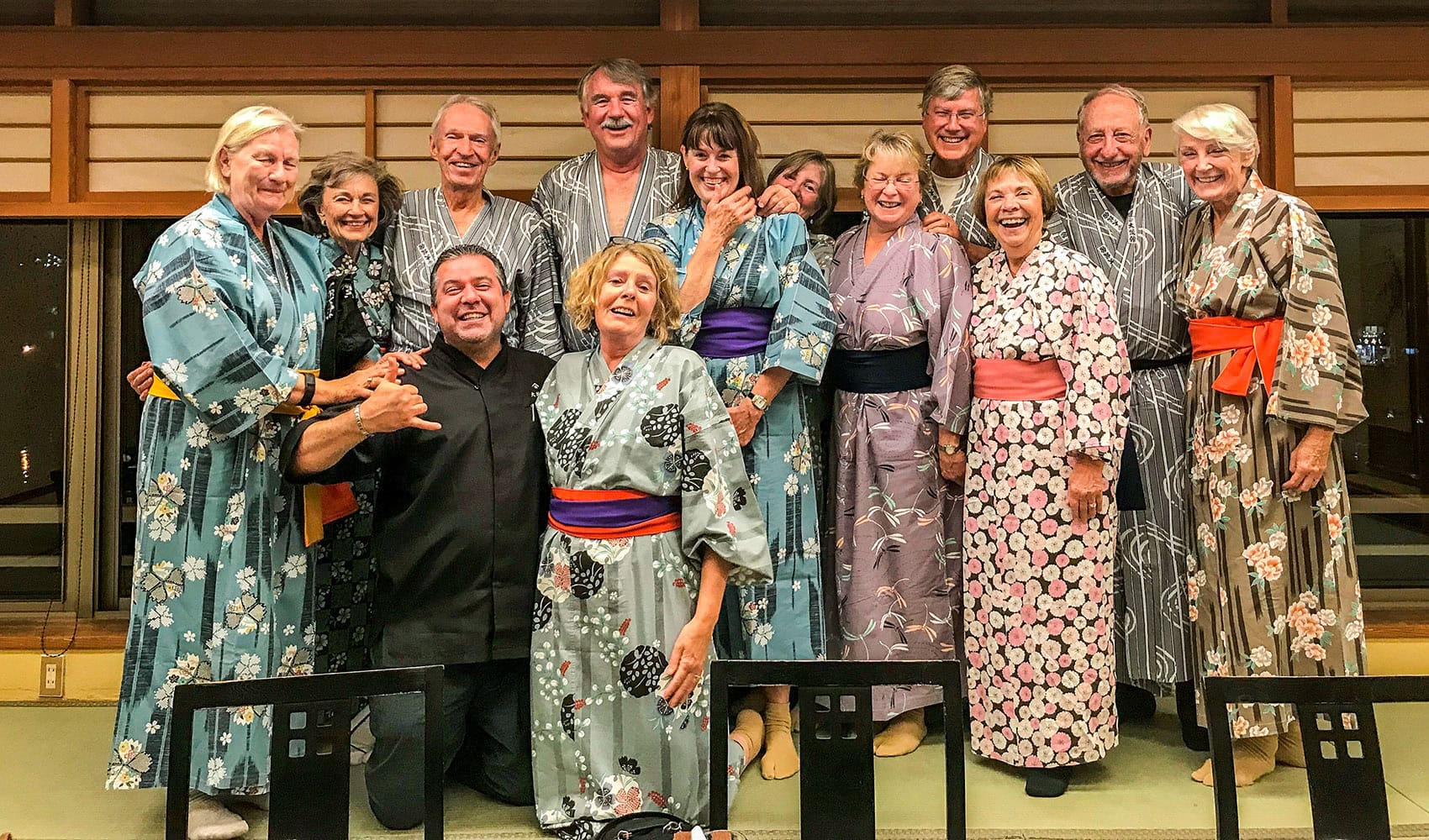"This was a wonderful trip. We had lots of new experiences and were amazed by the beauty, history, and culture. Staying at traditional-style hotels, wearing traditional clothing, and eating Japanese meals made this an immersive experience of the best sort. We had so many special experiences, special meals, and special performances."