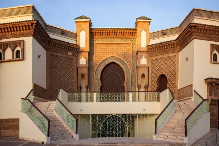 Casablanca, Morocco's largest city, showcases a fusion of French, Moorish, and Art Deco styles in its downtown neo-Mauresque structures. The prominent Hassan II Mosque, finished in 1993, features a towering 690-foot minaret with laser projections, and the 18th-century medina's lively alleyways provide a glimpse into the city's historical charm. Place Mohammed V, with palm trees and an elaborate fountain, symbolizes Casablanca's dynamism.